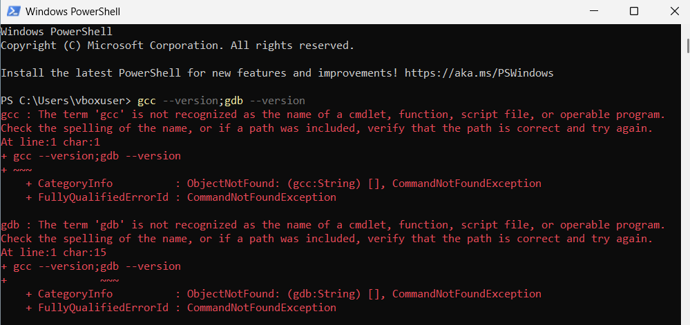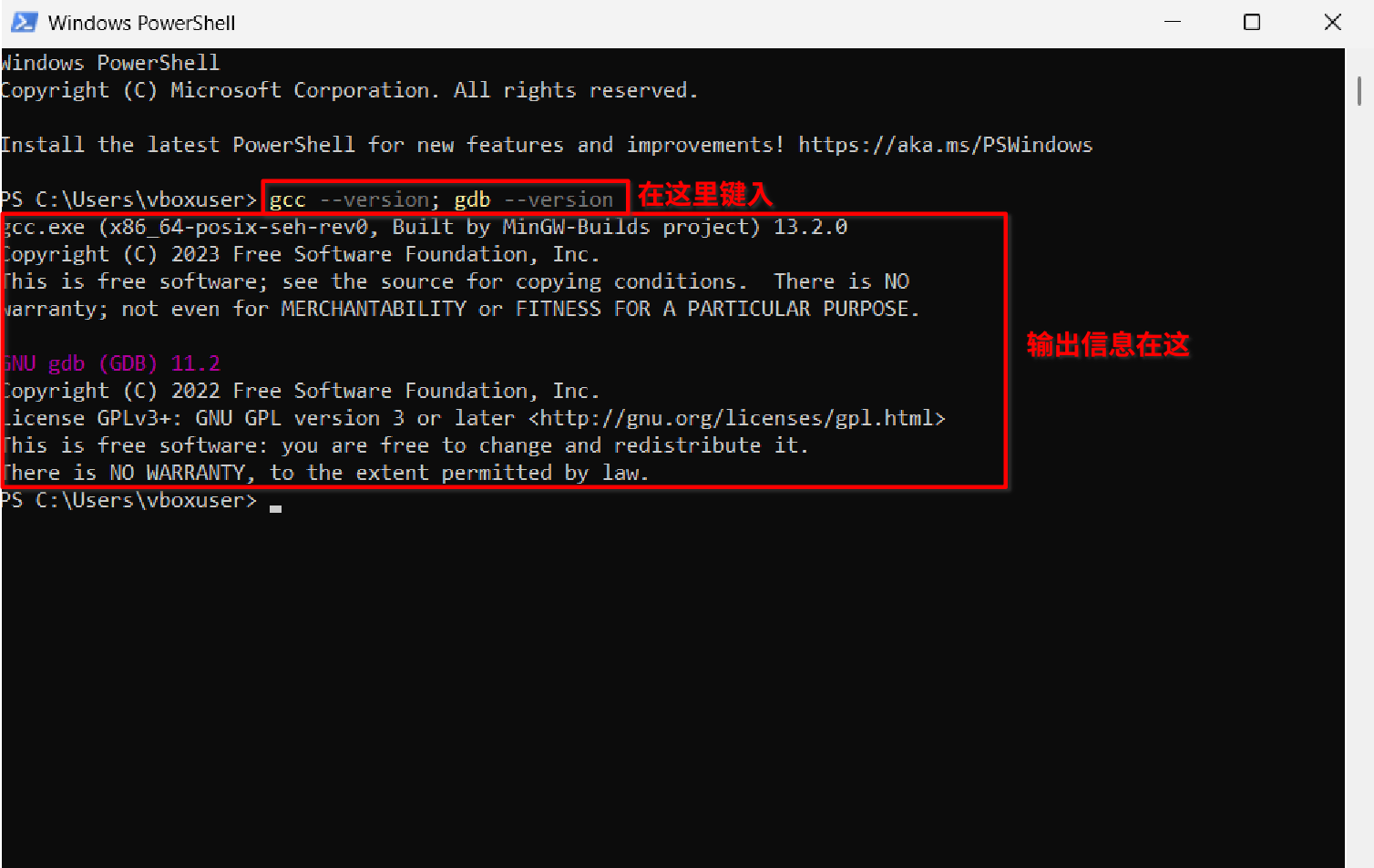 In the black window that pops up, type the following: gcc --version; gdb --version. Pay attention to case, spaces, and use English half-width semicolons. It’s best to copy and paste this.