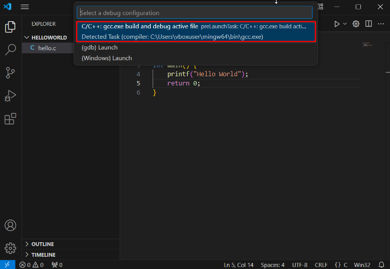 In the pop-up menu, select the option containing gcc.exe